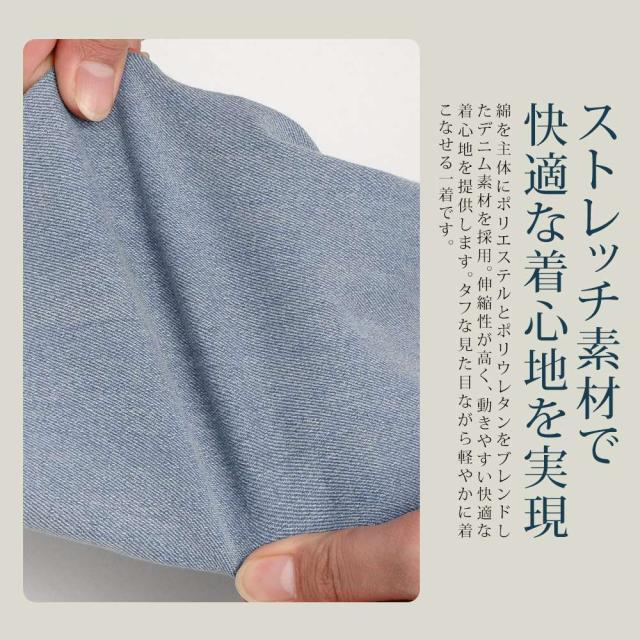 綿を主体にポリエステルとポリウレタンをブレンドしたデニム素材を採用。