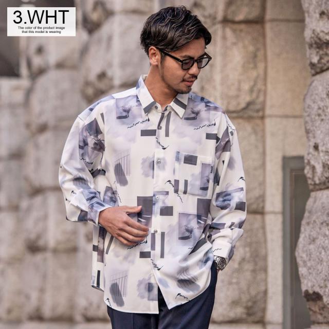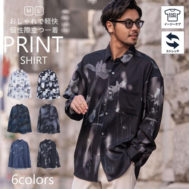 シャツ メンズ ブランド おしゃれ 長袖シャツ カジュアルシャツ ルーズシャツ 大きいサイズ ゆったり 総柄 プリント シンプル 大人 カジュアル きれいめ 上品 ホワイト ブラック ブルー 白 黒 M L 20代 30代 40代 ユニセックス 男性 男 服 冬 春 ファッション [NM25SP07]