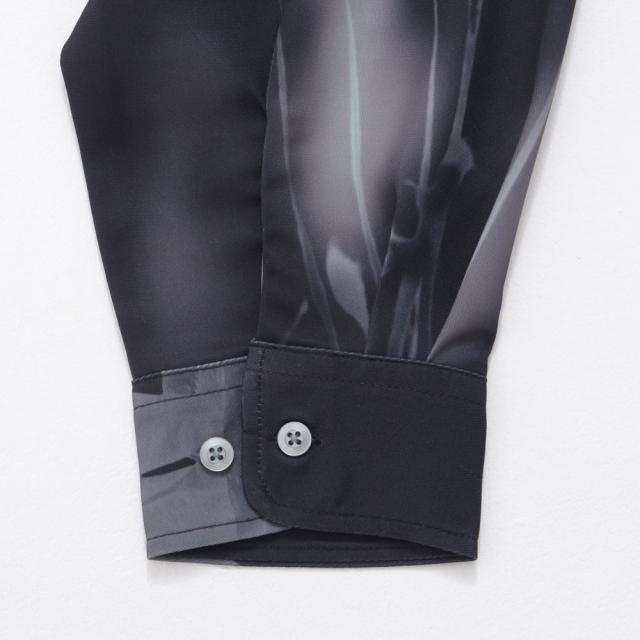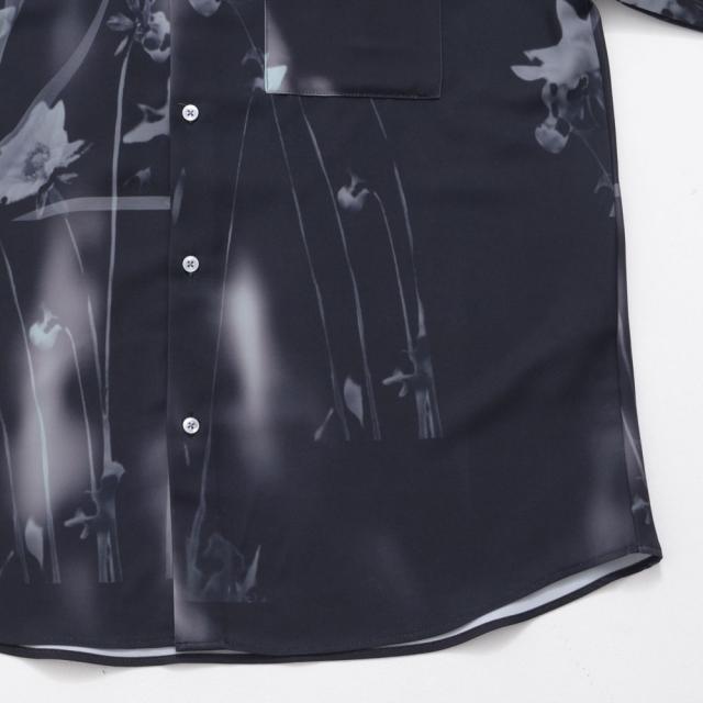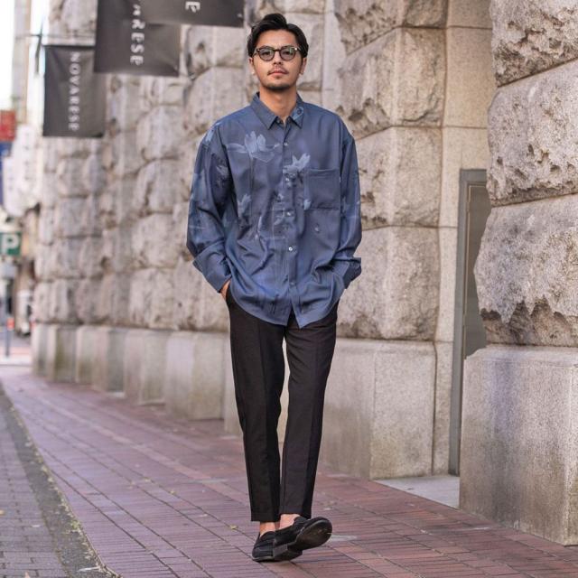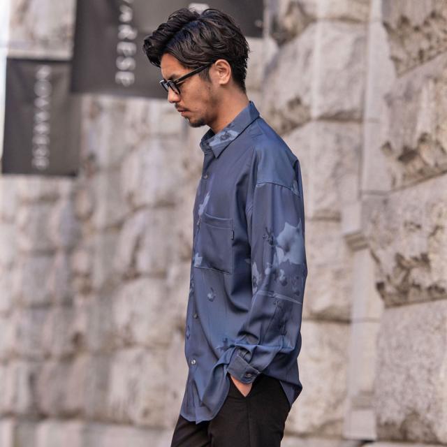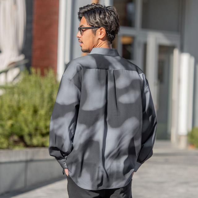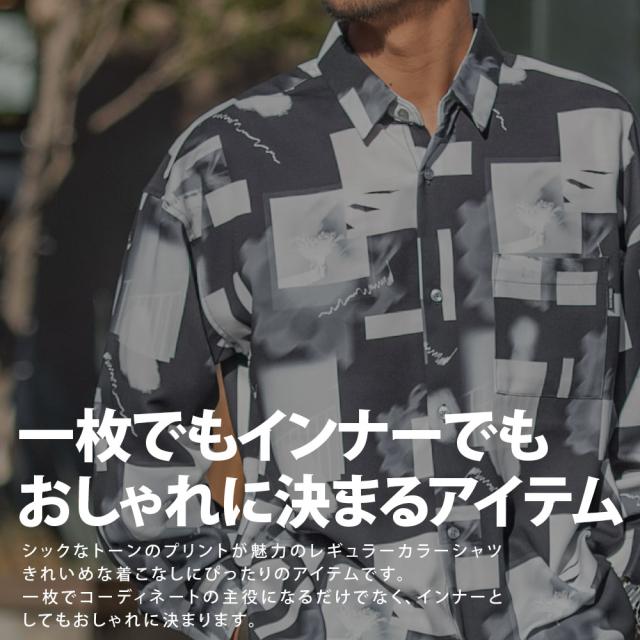シックなトーンのプリントが魅力のレギュラーカラーシャツ。