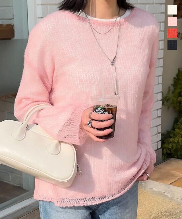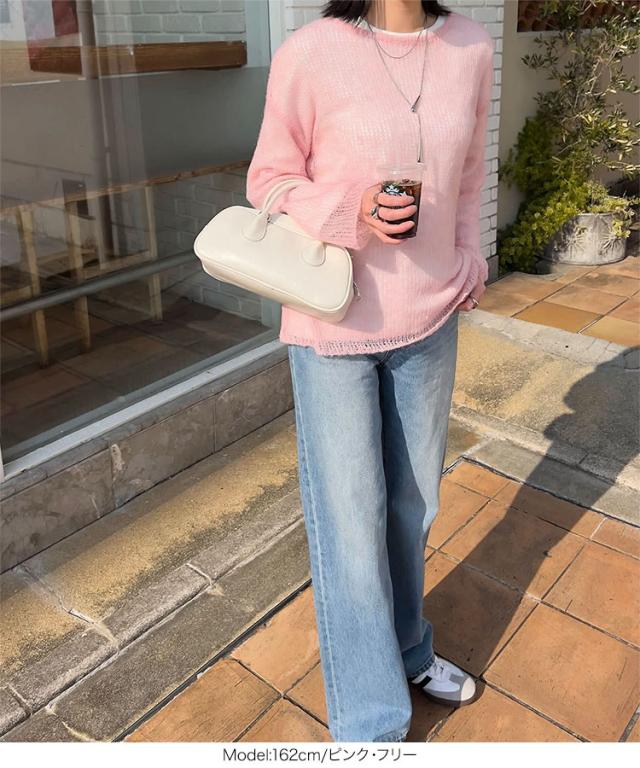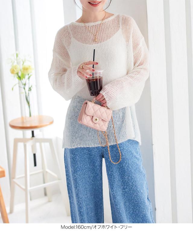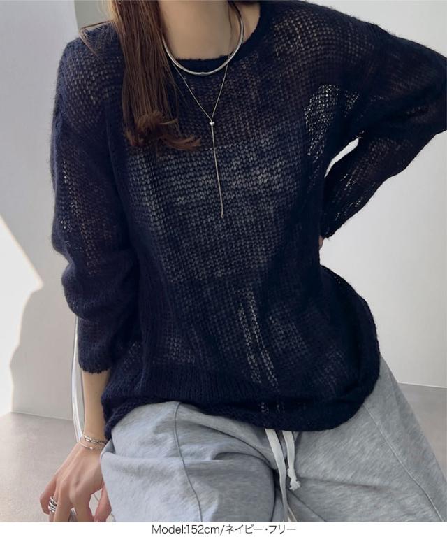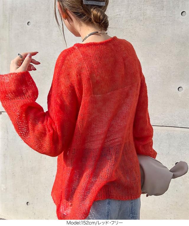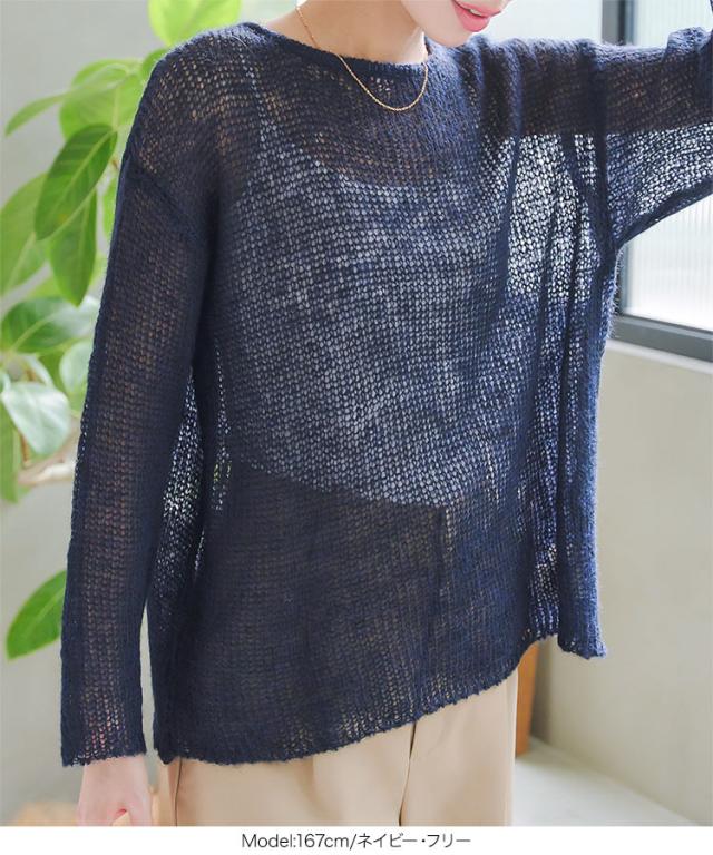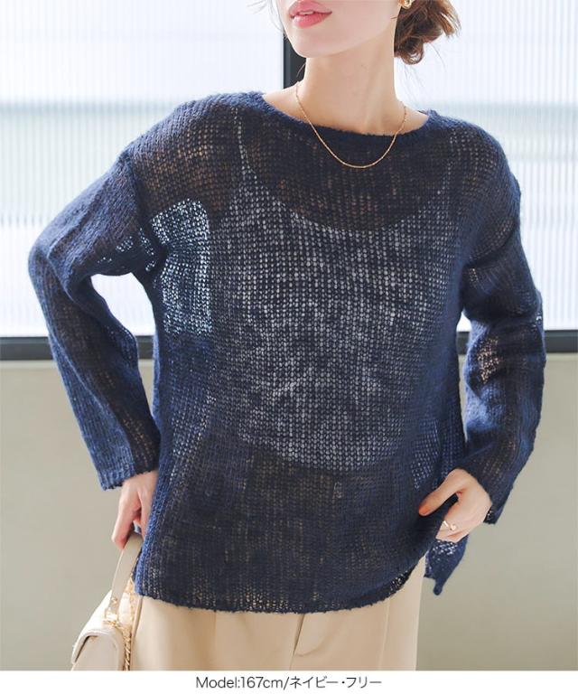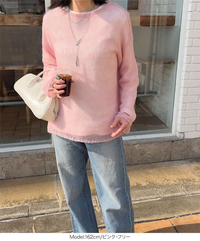 春新作 透かし編みボートネックニットチュニック C7424 入荷済 レディース 20代 30代 40代 ニット セーター 透かし編み シアー チュニック トップス ロングトップス 長袖 ボートネック ピンク レッド