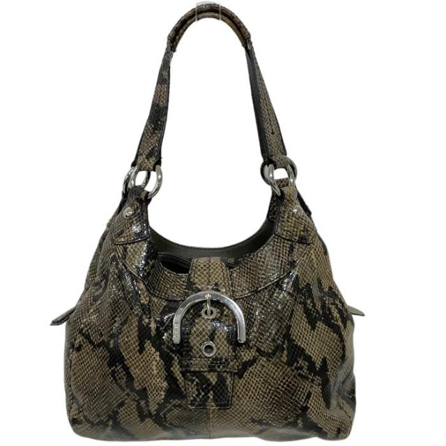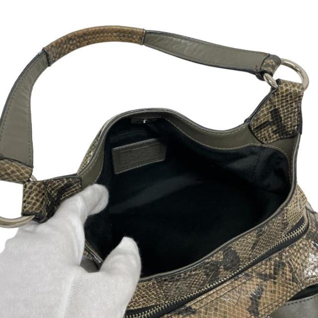 コーチ COACH ハンドバッグ レザー パイソン型押し プリント トートバッグ F17419 レディース ベージュ / ブラウン 中古 mag12186