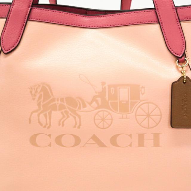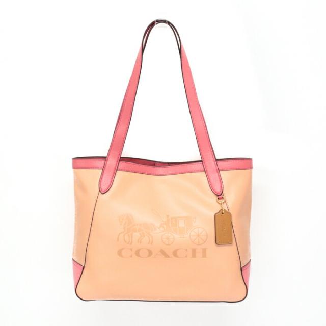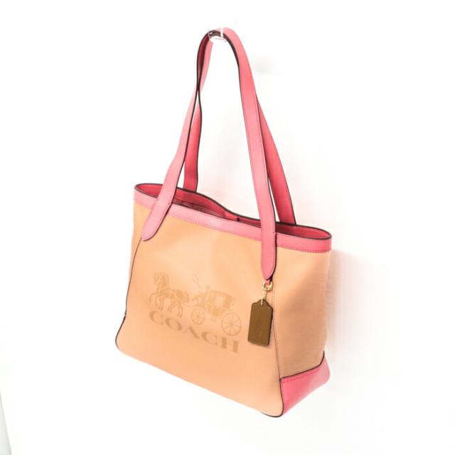 コーチ COACH カラーブロック ウィズ ホース アンド キャリッジ レザー C5676 トートバッグ ハンドバッグ ショルダーバッグ バイカラー ロゴ レディース ピンク 美品 中古 mao01027