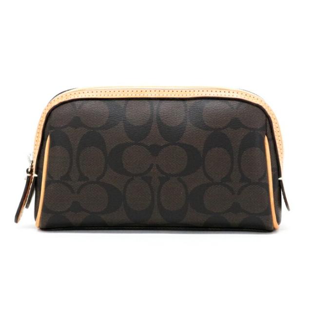 コーチ COACH ポーチ レザー PVC シグネチャー コスメポーチ アクセサリーポーチ 小物入れ レディース ベージュ / ブラウン 中古 maq02005