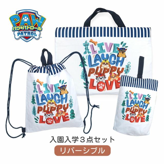 入学準備 袋 セット 男の子 保育園 入園グッズ 3点セット pwp166lb-pwp167lb-pwp168lb パウパトロール PAW PATROL レッスンバッグ シューズバッグ ナップサック リバーシブル キッズ 男の子 男子 男児 女の子 女子 女児保育園 幼稚園 こども園 小学校 小学生 入園 入学