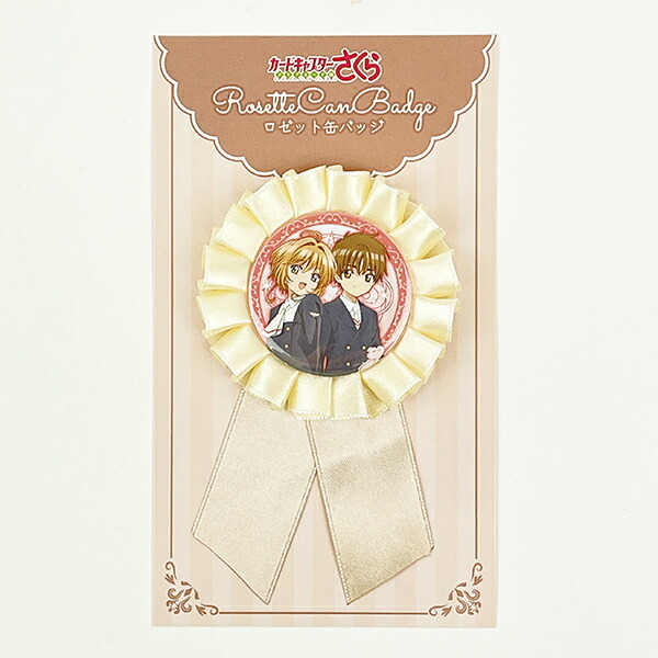 カードキャプターさくらのクリアカード編のロゼット缶バッチです。バラの花びらをモチーフにしたリボンがキュート♪カードキャプターさくら好きにはたまりません!ぜひお好きなキャラクターの缶バッチをバッグなどに付けてお出かけしてみてください☆