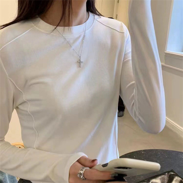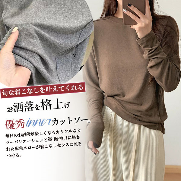 ■キーワード:tシャツ Tシャツ 二重仕立てで透けにくい[Vネック/ボートネック/スクエアネック]スムースカットソートップス カットソー レディース 長袖 大きいサイズ トップス インナー プルオーバー フリル 重ね着 秋冬 秋物 秋服 冬物 伸縮性 ストレッチ 体型カバー オフィス 秋冬