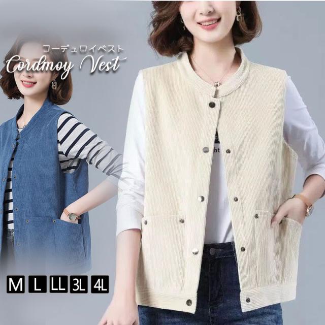 爆売中 コーデュロイ ベストレディース 40代 ジレ チョッキ 秋コーデ カジュアル ノースリーブ シンプル 大人 上品 vネック 体型カバー