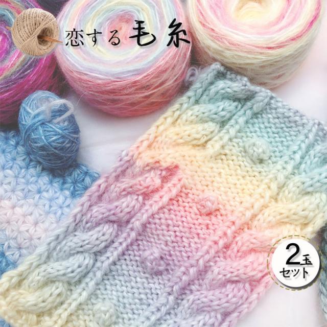 値下げ 毛糸 セール 中細 特価 2玉セット 段染め かすり染め モヘア リュージュプリントコットン 秋冬 アウトレット ダイヤモンド毛糸