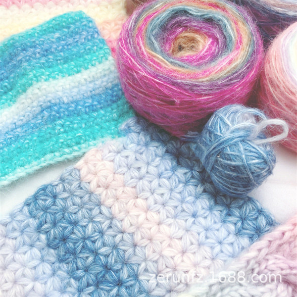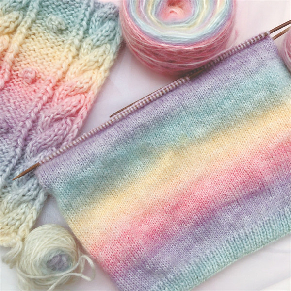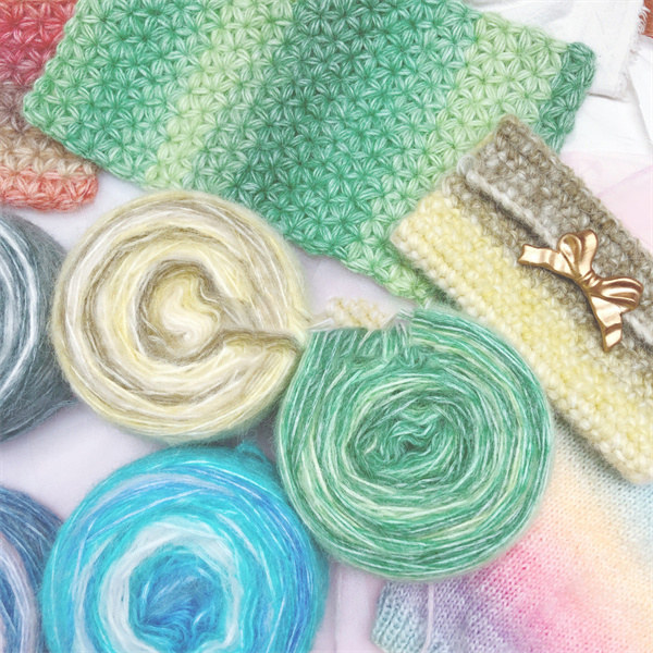 ◎カラフルな中にスラブが見え隠れし、シンプルな編み地にも立体感や透け感が生まれます。