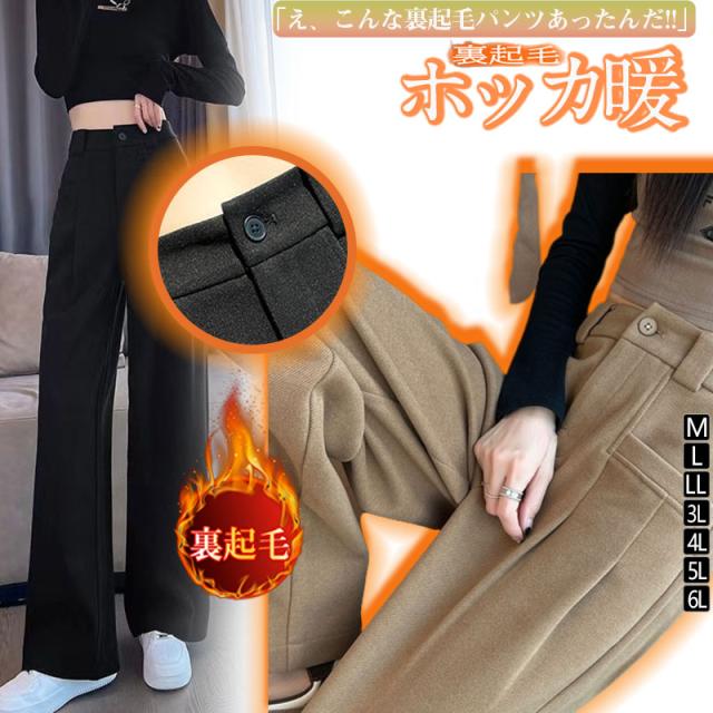 ワイドパンツ レディース 裏起毛 秋冬 ラシャ ストリート ハイウエスト 前タック ガウチョパンツ ウエストゴム 暖かい ゆったり 楽ちん ゆったり