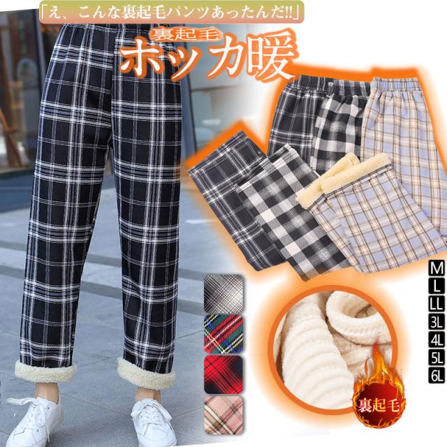 値下げワイドパンツ レディース 秋冬 チェック ロング丈 カジュアル あったか 裏起毛パンツ シンプル 大人可愛い 無地 楽ちん ズボン ゆったり