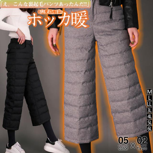 ワイドパンツ レディース 裏起毛 ダウンパンツ 秋冬 ガウチョパンツ ウエストゴム 暖かい ゆったり あったかい 防寒 ロング パンツ ボトムス