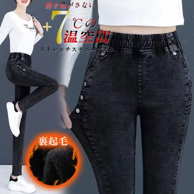 スキニーパンツ レディース デニム ス裏起毛 レギンスパンツ 細身 伸縮 軽く伸びる 秋冬 黒 ボトムス美脚 美尻 大きいサイズ 無地