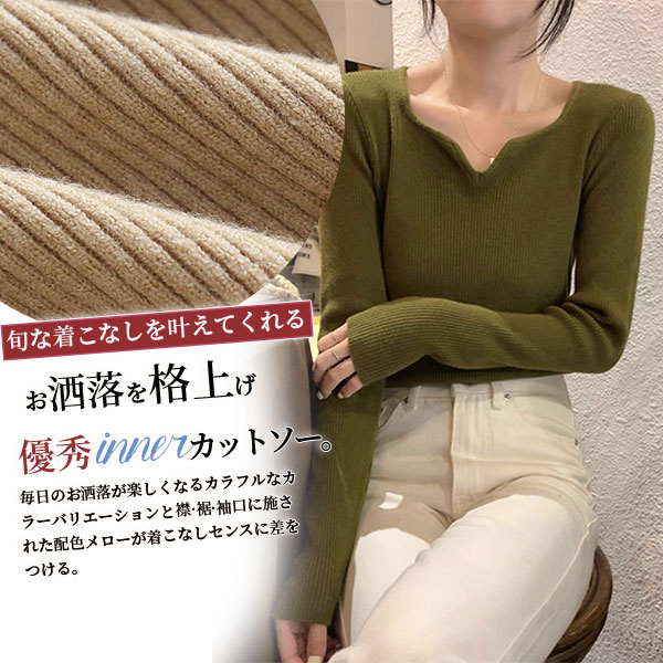 トップス リブカットソー レディース 長袖 vネック インナー レイヤード 重ね着 レディース 秋 冬 おしゃれ プレゼント 伸縮性 通勤 OL