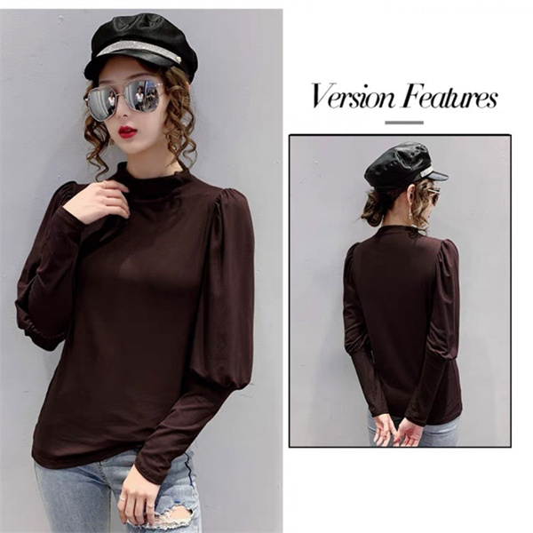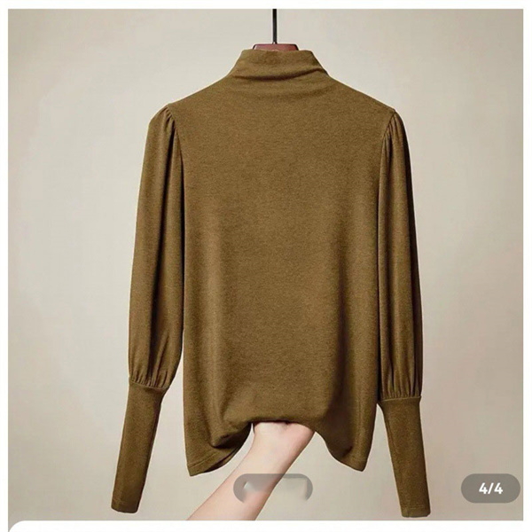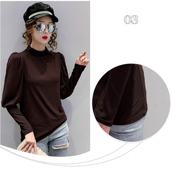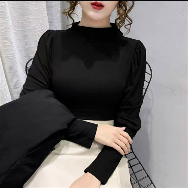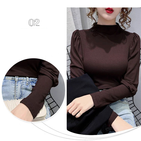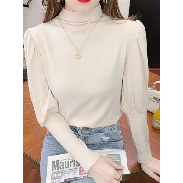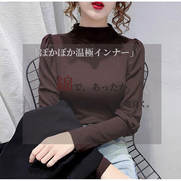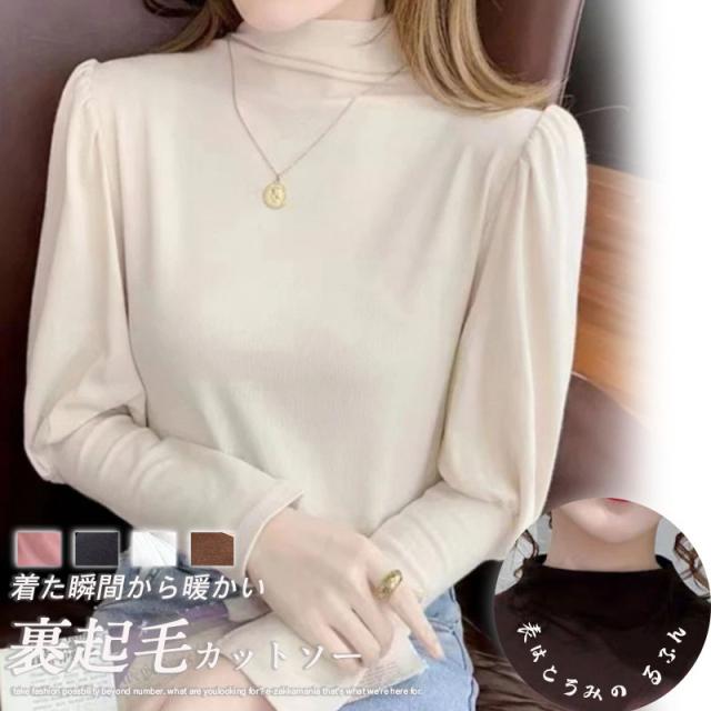 秋コーデ カットソー レディース 秋冬 トップス ロンT 長袖 パフスリーブ タートルネック ハイネック 大きいサイズ あったかい 無地 伸縮性