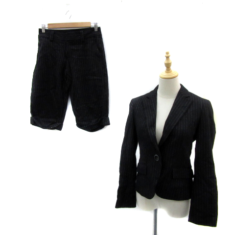 【中古】ロペ セットアップ 上下 テーラードジャケット ハーフパンツ ストライプ柄 上9AT 下60-86 黒 白 レディース