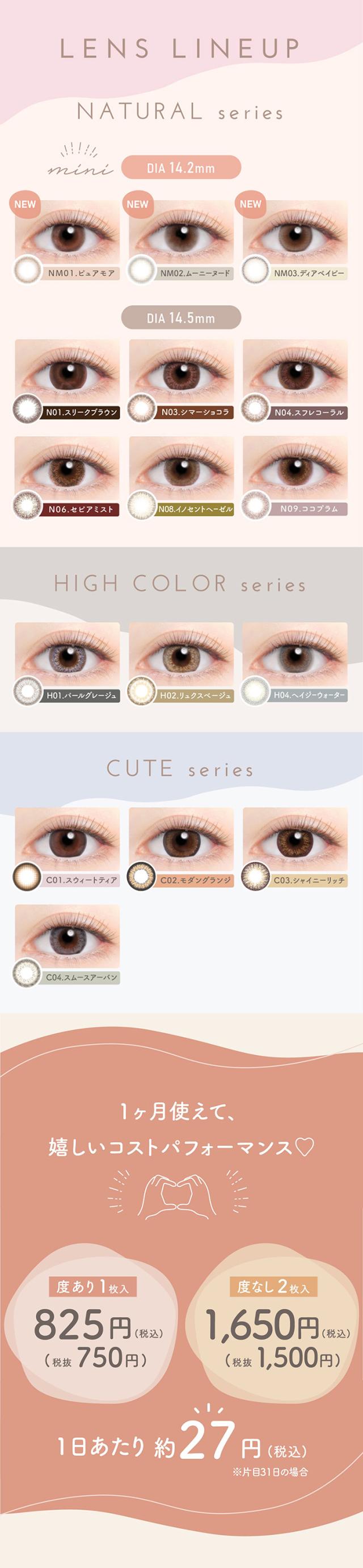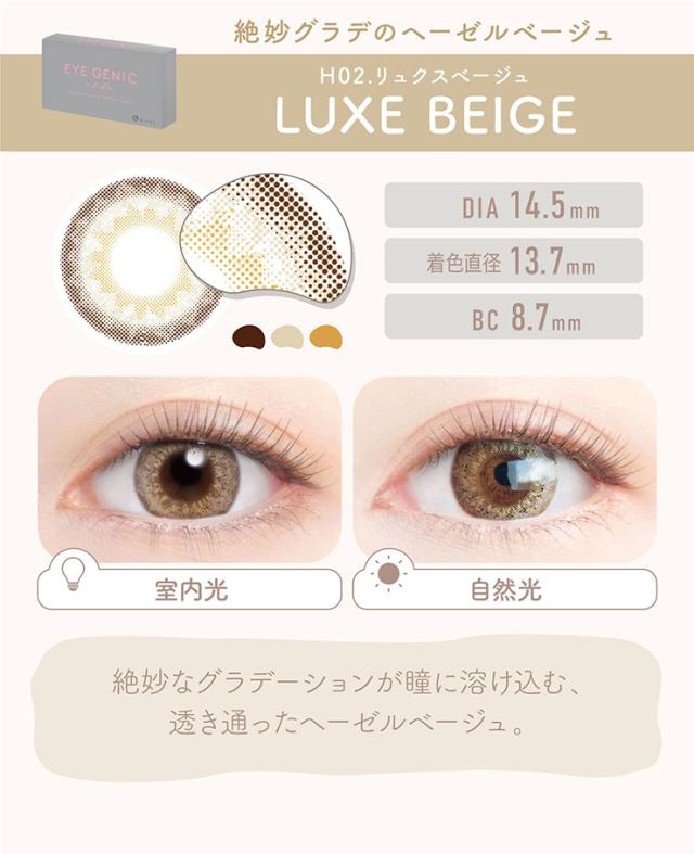透き通ったベージュカラー。 絶妙なグラデーションが溶け込み瞳にハーフ感をプラス。