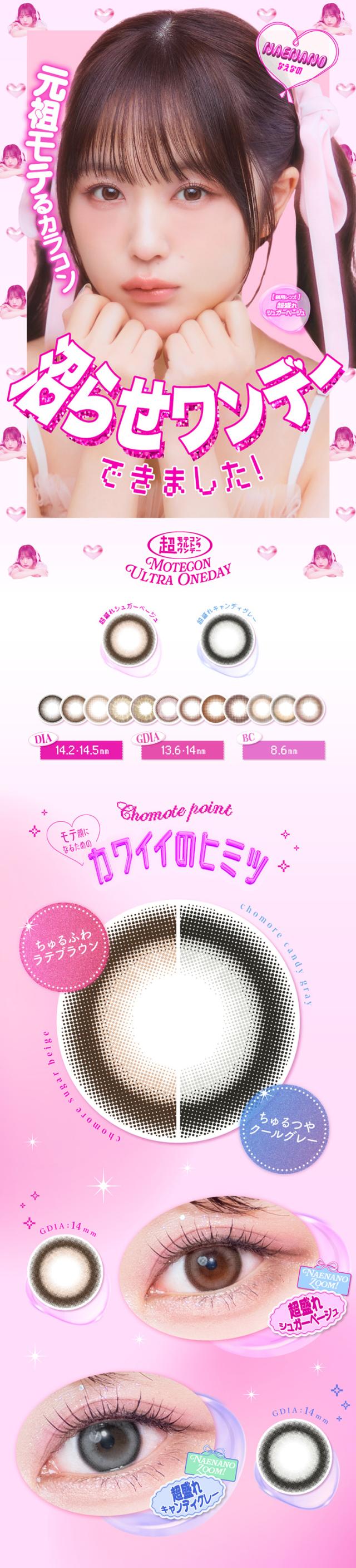 【メール便送料無料】Motecon Ultra 1day(10枚入り)(超モテコンウルトラワンデー) なえなの カラコン カラーコンタクト【当日発送】