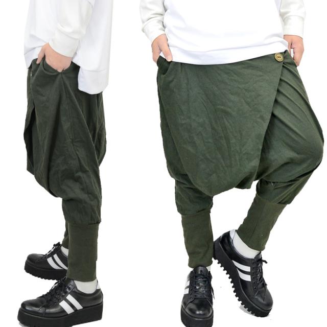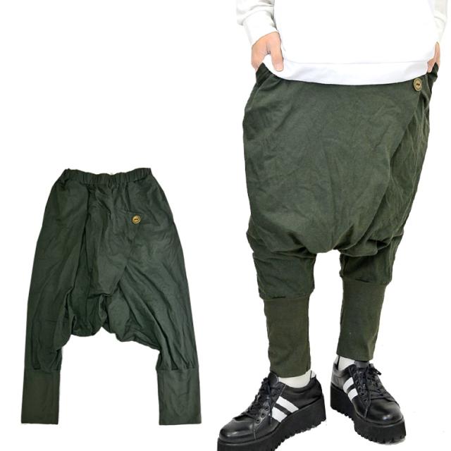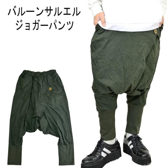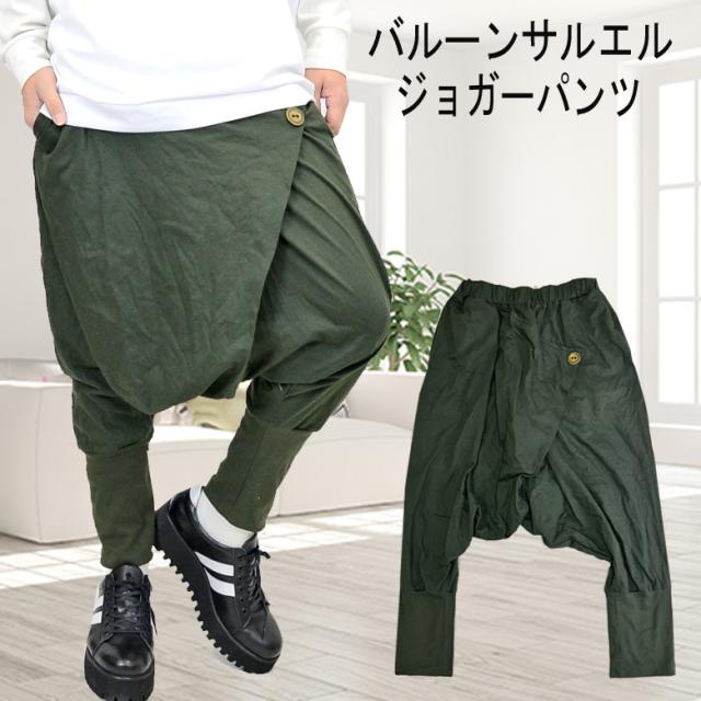 【閉店セール】 バルーン サルエル ジョガーパンツ 超サルエルパンツ メンズ バルーンパンツ 9194 バルーンパンツ サルエルパンツ ダンス アシンメントリー カーキ フリーサイズ ジョグパンツ 部屋着 お洒落着 超 サルエルパンツ ドレープパンツ