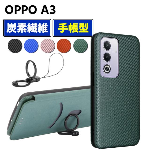 OPPO A3 5G 手帳型 薄型 カーボンファイバー スマートフォン用ケース 炭素繊維 カバー TPU 保護バンパー 財布型 マグネット式 カード収納 落下防止 カードホルダー