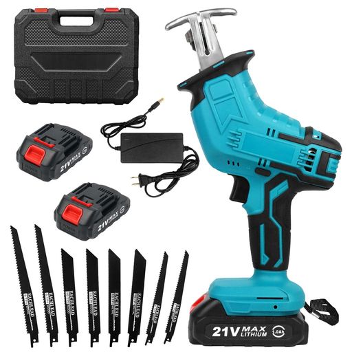 電動のこぎり 21V充電式レシプロソー 充電 のこぎり 無段変速 コードレスレシプロソー 替刃8本 2個リチウムイオンバッテリ1.0AH 金属切断、木工用、さまざまな作業に 収納ケース 付き 日本…