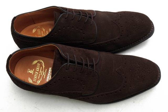 ○スコッチグレイン SCOTCH GRAIN イタリア・シャラーダ社製カーディフスエード 牛革 ビジネスシューズ 5395 外羽根フルブローグ 中古
