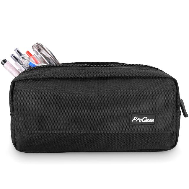 ProCase ペンケース 大容量 シンプル筆箱 ジッパー付き 学生用 社会人用 多機能 ?ブラック