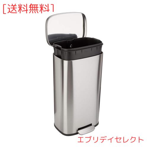 Amazonベーシック ゴミ箱 30L(30リットル) ソフトクローズ 静音 ふた付き ペダル付き スチール製 サテンニッケル おしゃれ 長方形