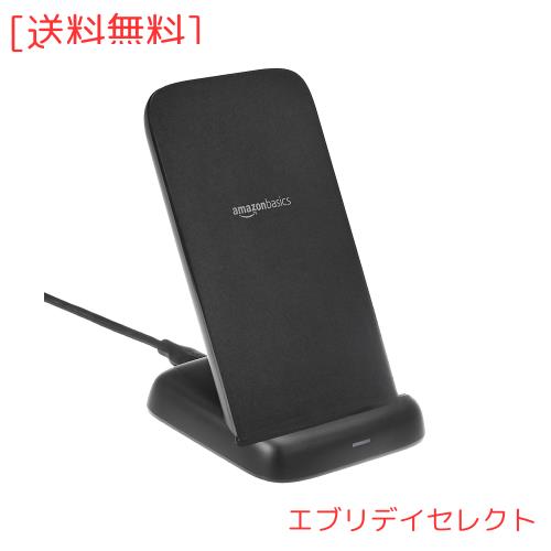 Amazonベーシック 10W Qi認証 ワイヤレス充電スタンド(iPhone 15/14/13/12/11/X、Samsung) USBケーブル付属(ACアダプターなし) ブラック