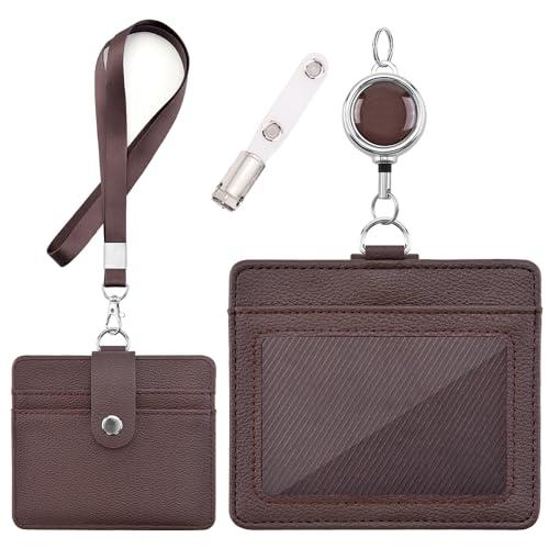 IDカードホルダー - 横型&縦型 IDカードケース 社員証 定期入れ ネームホルダー 両面用 名札 パスケース 胸ポケットクリップ&伸縮リール
