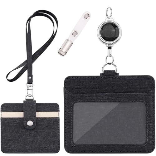 IDカードホルダー - 横型&縦型 IDカードケース ネームホルダー 両面用 名札 パスケース 胸ポケットクリップ&伸縮リール式 クリップストラ