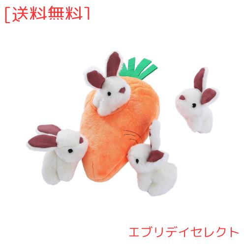 ◆商品名:Amazonベーシック 犬用きしむおもちゃ ぬいぐるみ かくれんぼ ウサギ 人参 4パック, オレンジ, ホワイト