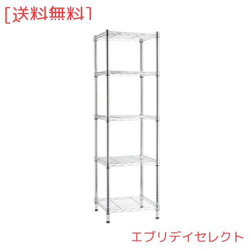 Amazonベーシック 収納棚ユニット 5段 タワー 調節可能 クロム 奥行き41cm x 幅41cm x 高さ137cm