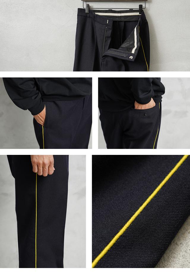 実物 USED フランス軍 ALPINE HUNTER イエロー サイドライン ワンタック ウール トラウザーズ【Cx】【I】|メンズファッション ミリタリー アメカジ アルパインハンター ウールパンツ ネイビー ヴィンテージ 古着 スラックス 軍パン