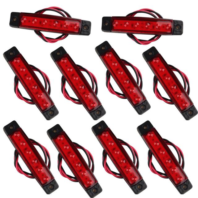 10個 12V 6連 LED レッド ライト サイドマーカー ランプ セット 片側 トラック トレーラー デコトラ カスタム 改造