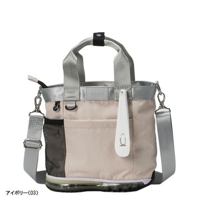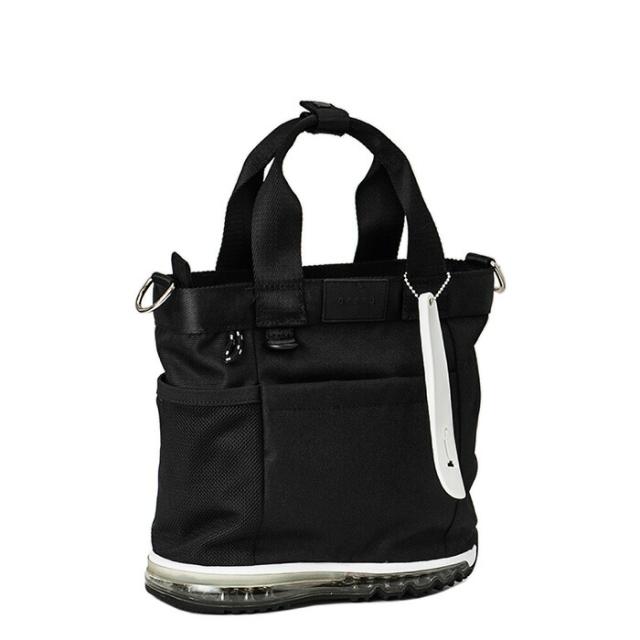 丈夫なオックス地のポリエステル素材と、スポーティーなエアーソールを用いたヘビーデューティーモデル。天マチにはファスナーが付いてゴルフやアウトドアでのカラス対策も安心。ライニングには汚れを拭き取りやすい素材を使用し、ペットボトル収納ポケットも搭載。普段使いからペットのお散歩、アウトドアなどアクティブなシーンで大活躍する取り外し可能なショルダーストラップも付属。