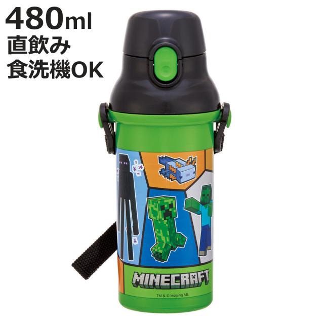 水筒 480ml 抗菌直飲プラボトル マインクラフト25 ( マインクラフト 子供用 抗菌 プラスチック製 ダイレクトボトル 直飲み ワンタッチ 日本製 抗菌加工 AG 銀 ショルダーベルト付き 広口 軽量 ボトル ワンプッシュ )
