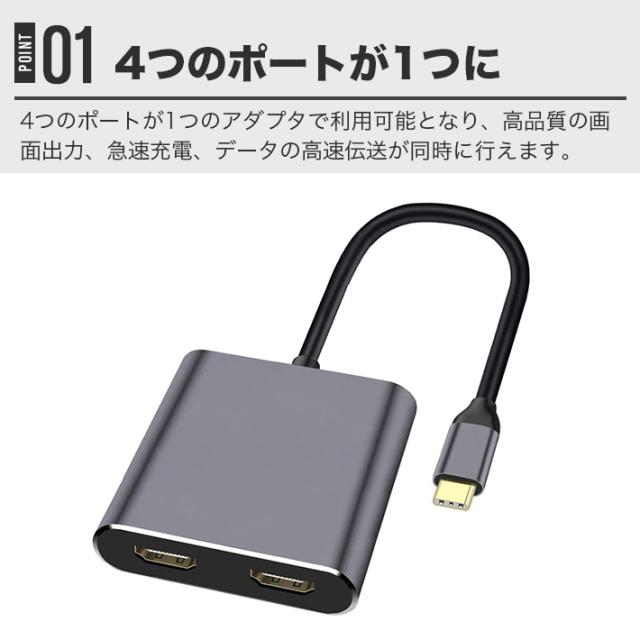 USB C HDMI 変換アダプター,デュアル HDMI,4-in-1Type C to HDMI アダプタ,4K対応