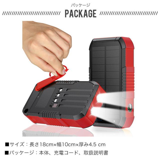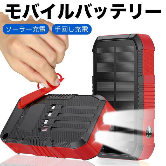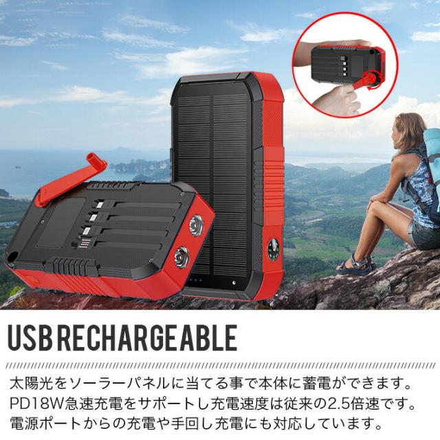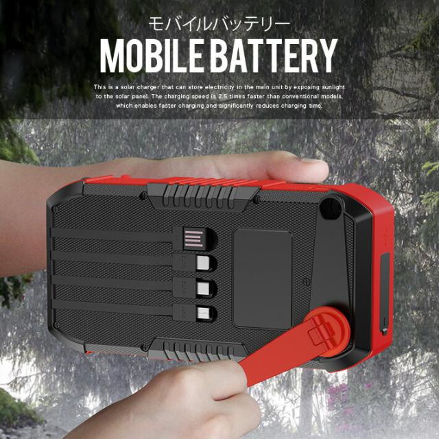 ソーラーモバイルバッテリー 大容量 66800mAh 22.5W/PD18W 急速充電 4本ケーブル 6台同時充電 手回し充電 5way蓄電 IPX7 防水 耐衝撃 LED