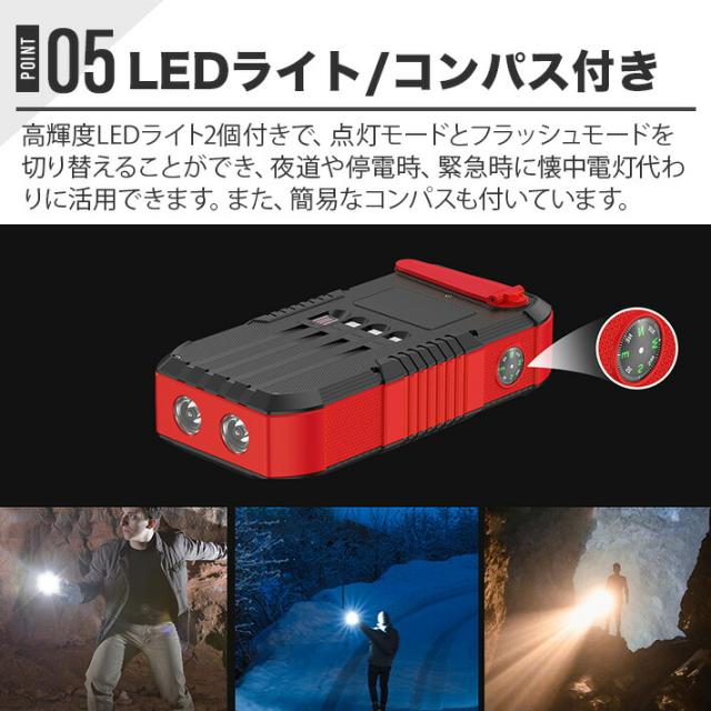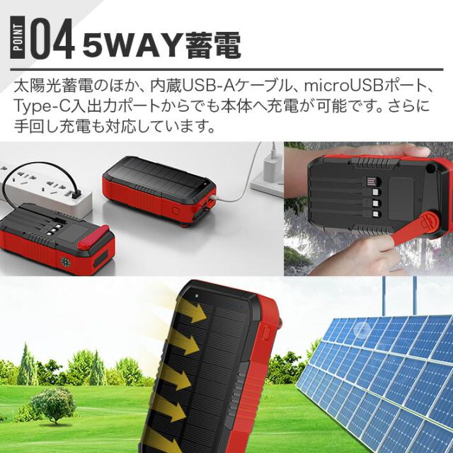 【USB入力+ソーラー蓄電+手回し充電 5WAY蓄電】