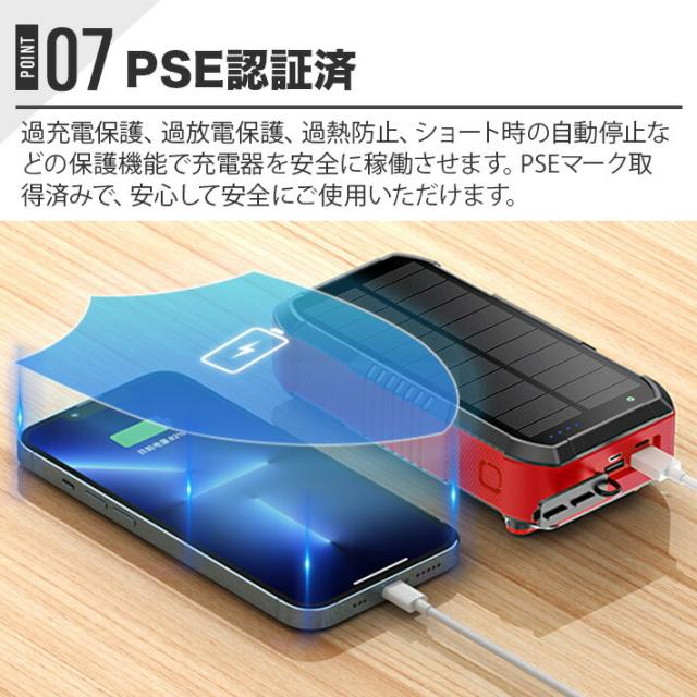 【22.5W/PD18W急速充電 超大容量バッテリー】太陽光をソーラーパネルに当てることで本体に蓄電可能なソーラー充電器です。iOS、Androidシステム両方と互換性のあるPD18W急速充電をサポートし、充電速度は従来の2.5倍速で、よりスピーディーな充電が実現され、充電時間を大幅に短縮します。