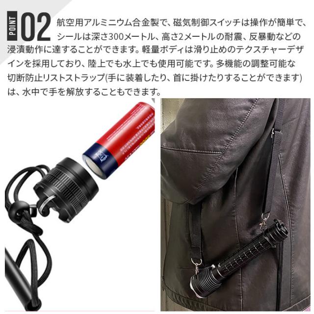 超防水設計で、水中でも懐中電灯の浸水を心配する必要がありません。フリーダイビングにも対応できます。