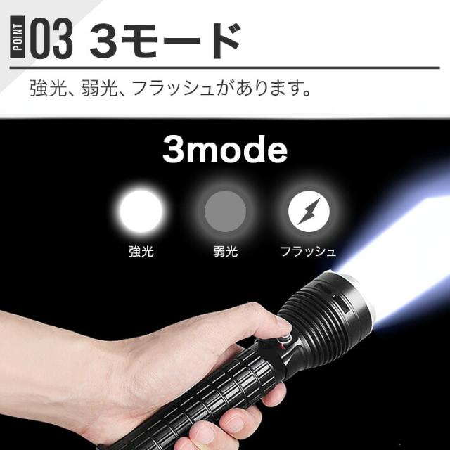 LED 懐中電灯 防水 最強6000ルーメン 超強力 XHP70LED 3モード 500m照明