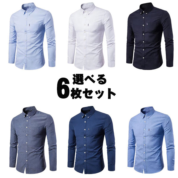 ワイシャツ 選べる7枚 セット オックスフォード メンズ 長袖 形態安定 ボタンダウン ビジネス 無地 父の日 大きいサイズ ボタンダウン 仕事