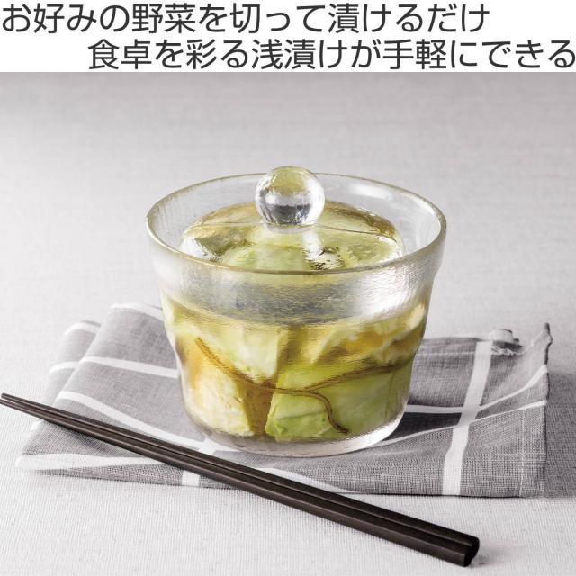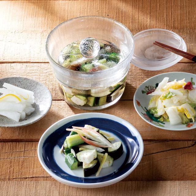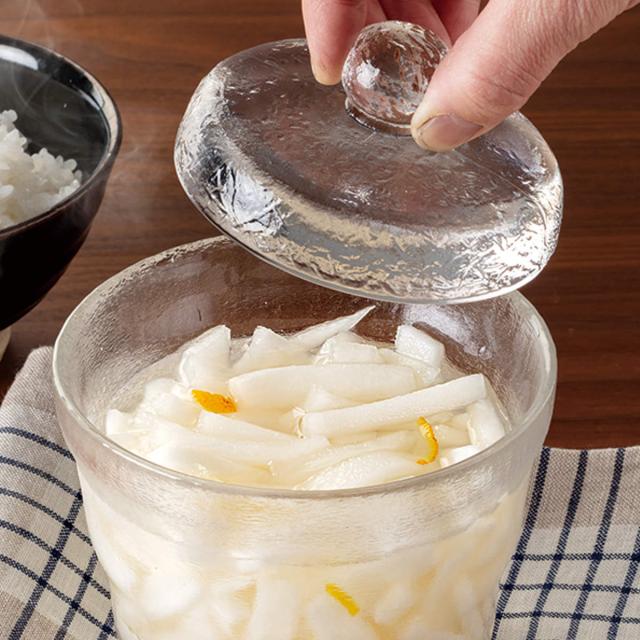 旬の野菜や残った食材を使って気軽に浅漬けを楽しめるガラス製浅漬け容器です。ガラス製ならではの美しさとコロンとした丸みが魅力的。中身の状態が分かりやすく、食材の彩りを食卓に取り込めます。
