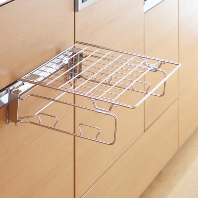 ステンレス製で湿気やサビに強いのでキッチンはもちろん、新たに棚や収納を増やしにくい洗面所やバスルームでもお使いいただけます。