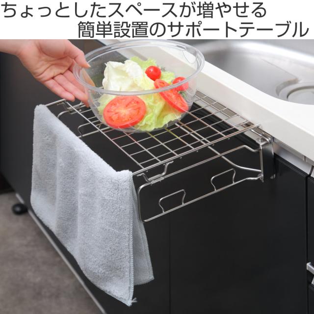 補助テーブル &kit たためる サポートテーブル キッチン ( 収納棚 調理補助台 タオル掛け ポリ袋 折りたたみ ステンレス ホルダー サイドテーブル ゴミ袋ホルダー 収納 テーブル 一時置き ふきん掛け )