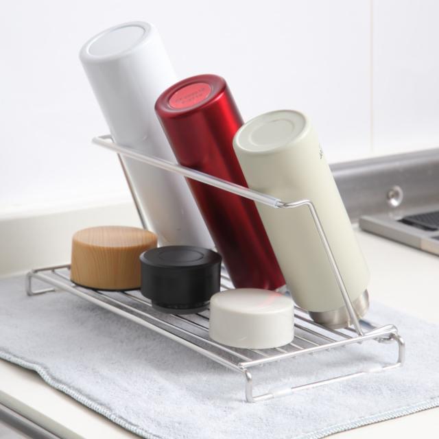 置き場所に困る水筒の水切りにピッタリなボトルスタンドです。乾きにくいマイボトルや水筒も斜めに立て掛けておくとスッキリと乾かすことができます。大小さまざまなサイズの水筒やスポーツボトル等、全部まとめてこれ1個で乾かせます。