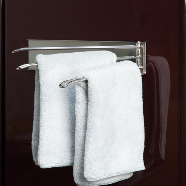幅広のバーなので、少し厚めのふきんでもしっかり干せます。バーの可動範囲も広いので、干すものの厚さや大きさによってお好みの広げ方ができます。