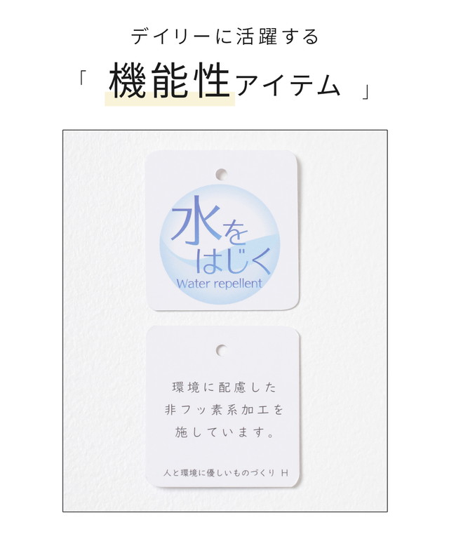 表面は『非フッ素撥水加工』で、雨や雪の日も安心。